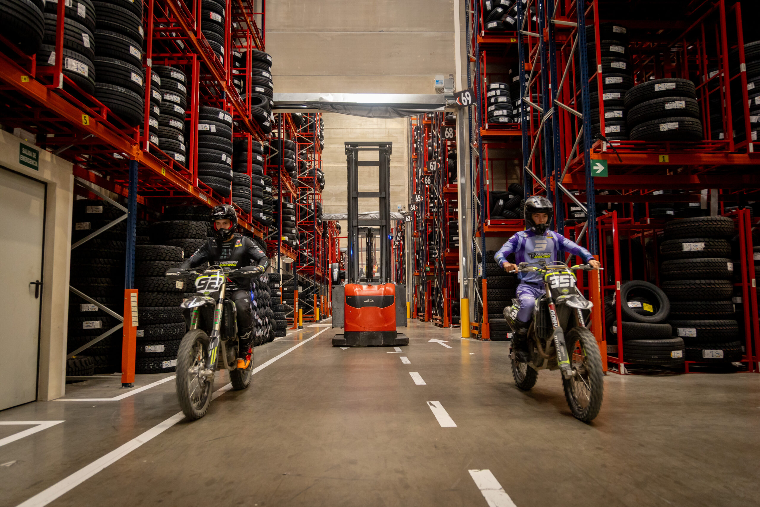 La visita a las instalaciones de Grupo Andrés contó con la presencia de Javi Pavo, Team Manager del equipo; y de los pilotos Ander Valentín y Carlos Prat, que pudieron conocer de primera mano la capacidad logística, el stock y la amplia variedad de neumáticos disponibles para moto con los que trabaja la compañía.